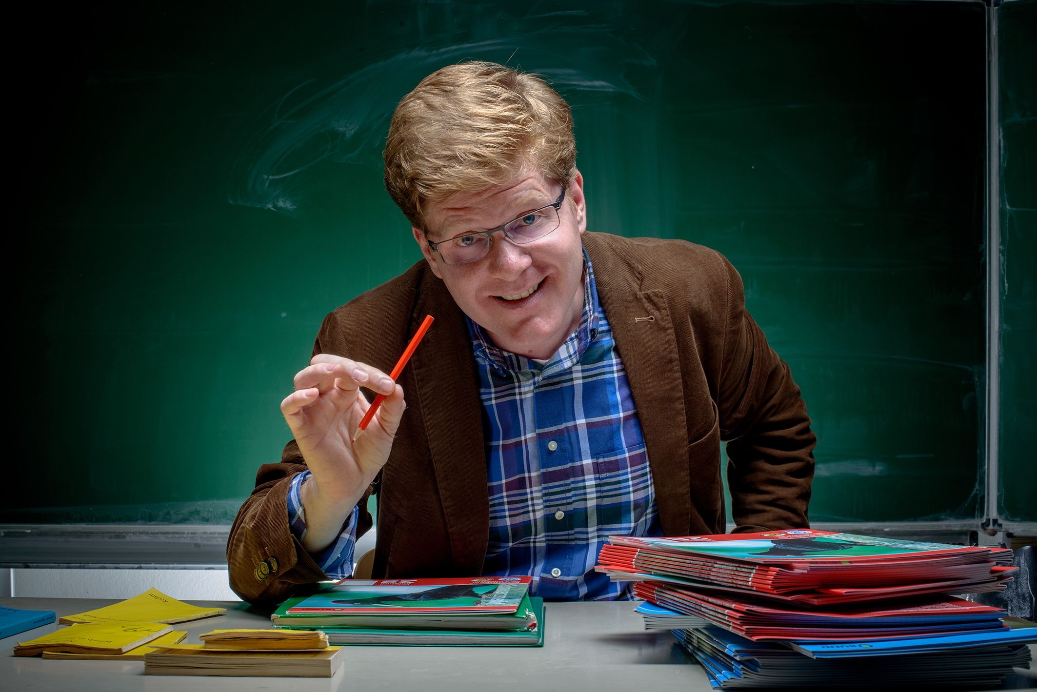 Herr Schröder ist wieder da! Ab Herbst 2020 geht der staatlich geprüfte Deutschlehrer mit seinem neuen Solo „Instagrammatik – Das streamende Klassenzimmer“ auf Tour. Vieles hat sich seither verändert an der Helene-FischerGesamtschule: Der Medienwagen hat Netflix, die Schulbücher gibt’s als Podcast und bettlägerige Schüler werden per Livestream zugeschaltet. Außerdem ist freitags jetzt immer frei. Der Lehrermangel wird durch Youtube-Tutorials ausgeglichen: das Rezozialisierungsprogramm bringt bessere Klausur-Ergebnisse als je zuvor – das Kultusmysterium ist ratlos. Obwohl alles neu ist, sind manche Dinge natürlich beim Alten geblieben. Der Kopierer meldet Papierstau ohne Rettungsgasse, im Tafelschwamm paaren sich die Einzeller und auf dem Lektürestapel „Effi Briest“ liegt der Kreidestaub. „Frankfurt/Oder” ist für den Klassenprimus Justin nach wie vor eine rückversichernde Entscheidungsfrage und der Sportlehrer bleibt ein lieber, lieber Kollege: Sternzeichen Kein-Bock, im Aszendenten Großer Mattenwagen. Um Herrn Schröder da abzuholen, wo er steht, richtet ihm seine 12a einen Instagram-Account ein. Unter dem #korrekturensohn2.0 werden hier die wichtigsten Fragen diskutiert: Wann gibt es endlich den Videobeweis im Klassenzimmer? Was macht Herr Schröder beim Junglehrerstammtisch? Und singt er am Ende der Stunde wirklich „Atemlos durch G8“? Besuchen Sie „Instagrammatik“ und freuen Sie sich auf eine Doppelstunde Nachsitzen Deluxe. Doch keine Sorge: Nichts von alledem ist klausurrelevant und wenn Sie gut mitarbeiten, macht Herr Schröder 5 Minuten früher Schluss.