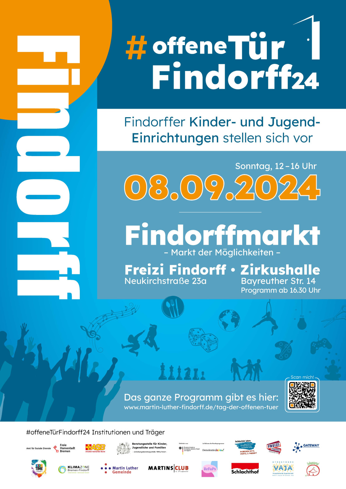 Der Tag der offenen Tür ist eine Kooperationsveranstaltung. Mit dabei sind das Amt für soziale Dienste Bremen, der ASB, Demokratie Leben!, die Erziehungsberatungsstelle Mitte / West, das Freizi Findorff, Gateway, Kidstime, die Klimazone, das Kulturzentrum Schlachthof, die Martin Luther Gemeinde, der Martinsclub, die Regionalen Fachkräfte für die psychische Gesundheit von Kindern und Jugendlichen, VAJA und das Zirkusviertel.